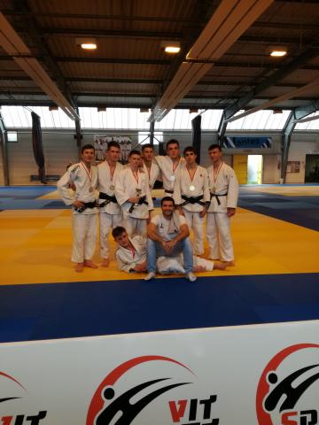 Au premier combat, nous prenons le JAC: Nolann a montré la voie aux autres combattants en mettant ippon sur un beau o uchi gari en 15 secondes. Le ton est donné et les combattants sont dedans... Jules rencontre un combattant dur à faire tomber mais ne lâche rien et réussi à 2 secondes de la fin  un uchi mata garde croisée... Ippon. Le combat suivant va être compliqué puisque Simon prend Titouan DIJOL et ils se connaissent bien. Grosse bagarre de kumi kata pendant 1'30 et sur une accélération de Simon (où il réussi à accélérer sur les mains) il met waza ari sur uchi mata. Il gère sur les mains pendant une minute et sur une action sen no sen (action simultanée - titouan tente de ashi barai et Simon tomoe nage) Simon marque ippon. Cette action a crée une petite polémique, mais Sullivan l'a tout de suite éteinte en mettant un magnifique Ippon en dix secondes sur sode tsuri komi goshi. Pour conclure, Antoine met ippon. 5 - 0