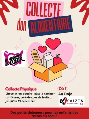 Comme chaque année, à l’approche des fêtes, le KAIZEN Judo St Sébastien organise une grande collecte de nourriture sur le thème « Des petits déjeuners pour les enfants des restos du cœur ».