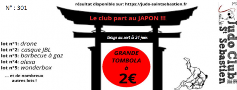 Nous sommes désolés pour les noms que nous avons sans doute écorchés... Nous avons contacté les gagnants le lendemain du tirage, et beaucoup d'entre eux sont déjà venus chercher leurs lots ! Si vous faites partie de la liste, n'hésitez pas à écrire à president@judo-saintsebastien.fr pour que nous nous organisions pour vous remettre votre lot !