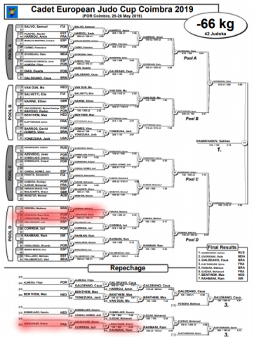 Simon passe le 1r tour par Ippon avec un seoi nage sur un immense Portugais. Il perd ensuite au deuxième tour sur un brésilen monstrueux (futur 5ème). Il est donc repêché et gagne son premier tour de repêchage en 24'' contre un autre portugais.Il prendra enfin un israëlien au second tour de repêchage et perdra sur trois pénalités alors qu'il fait tout le combat. Cela fait toujours de l'expérience et des combats engragés.
