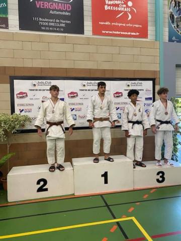 Maxence, en remportant ces 4 premiers combats par ippon, sur 4 mouvements différents, obtient une très belle médaille d’argent